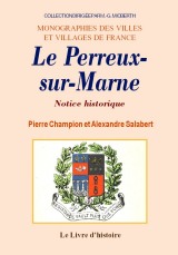 LE PERREUX-SUR-MARNE. Notice historique Référence : 2462 Auteur(s) : Pierre Champion et Alexandre Salabert Date édition : 2006 Format : 20 X 30 ISBN : 9782843738777 Nombre de pages : 250 Première édition : 1937 Reliure : br. |