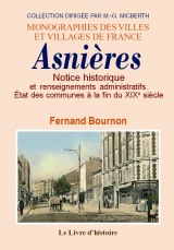 ASNIÈRES. Notice historique et renseignements administratifs Référence : 2880 Auteur(s) : Fernand Bournon Date édition : 2009 Format : 14 X 20 ISBN : 9782758603474 Nombre de pages : 182 Première édition : 1902 Reliure : br. |