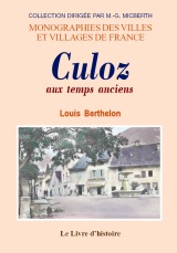 CULOZ aux temps anciens (Notes historiques sur) Référence : 2288 Auteur(s) : Louis Berthelon Date édition : 2005 Format : 14 X 20 ISBN : 9782843736742 Nombre de pages : 236 Première édition : 1974 Reliure : br. |