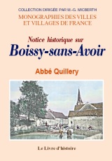 BOISSY-SANS-AVOIR (Notice historique sur) Référence : 2390 Auteur(s) : l'abbé Quillery Date édition : 2005 Format : 14 X 20 ISBN : 9782843737824 Nombre de pages : 280 Première édition : 1859 Reliure : br. |