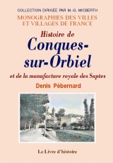CONQUES-SUR-ORBIEL et la manufacture royale des Saptes (Histoire de) Référence : 1124 Auteur(s) : Denis Pébernard Date édition : 1993 Format : 14 X 20 ISBN : 9782742800919 Nombre de pages : 338 Première édition : 1899 Reliure : br. |