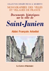 SAINT-JUNIEN (Documents historiques sur la ville de) Référence : 1254 Auteur(s) : L'abbé François Arbellot Date édition : 1993 Format : 14 X 20 ISBN : 9782742802234 Nombre de pages : 156 Première édition : 1847 Reliure : br. |