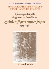 SAINTE-MARIE-AUX-MINES (Vallée de). Chronique des faits de guerre 1914-1918 Référence : 3345 Auteur(s) : Collectif Date édition : 2014 Format : 14 X 20 ISBN : 978-2-7586-0849-3 Nombre de pages : 176 Première édition : 1920 Reliure : br. |