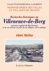 VILLENEUVE-DE-BERG (Recherches historiques sur) Référence : 0396 Auteur(s) : l'abbé Mollier Date édition : 1990 Format : 14 X 20 ISBN : 9782877603430 Nombre de pages : 456 Première édition : 1866 Reliure : br. |