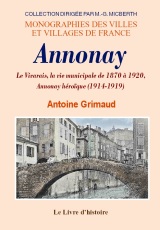 ANNONAY. Le Vivarais, la vie municipale de 1870 à 1920, Annonay héroïque (1914-1919) Référence : 1279 Auteur(s) : Antoine Grimaud Date édition : 2006 Format : 14 X 20 ISBN : 2-84373-815-6 Nombre de pages : 582 Première édition : 1926 Reliure : br. |