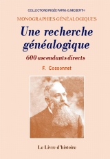 UNE RECHERCHE GÉNÉALOGIQUE. 600 ASCENDANTS DIRECTS Référence : MG01 Auteur(s) : F. Cossonnet Date édition : 2004 Format : 14 X 20 ISBN : 9782843733840 Nombre de pages : 564 Première édition : 1900 Reliure : br. |